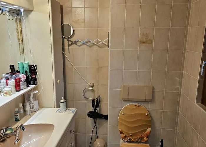 1 Chambre Jaune Dans Une Maison Prive comes with a bathroom with a separate toilet and a shower. There are a hairdryer and bath sheets for guests' comfort.